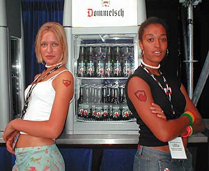 Jongeren hebben weinig interesse voor Dommelsch Ice, het nieuwe bierprodukt dat Dommelsch hier probeert te pluggen. Toch staan ze graag in de rij bij de Dommelsch Ice stand om te babbelen met de aantrekkelijke chicks achter de bar, die ook erg populair zijn bij de technici.